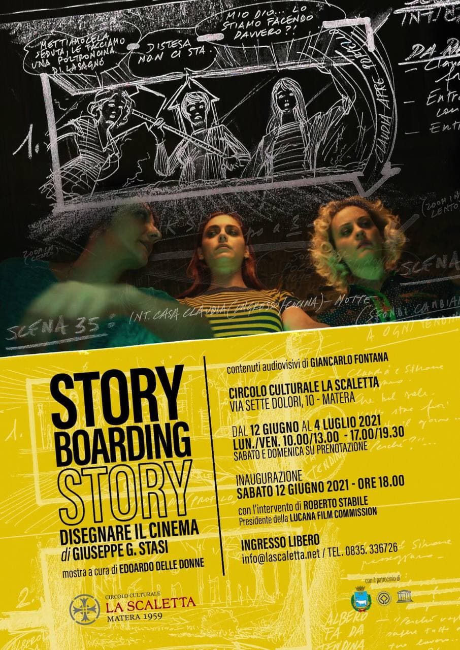 Domani, sabato 12 giugno, ore 18, presso la sede del Circolo Culturale La Scaletta (via Sette Dolori, 10 – Matera), si terrà l’inaugurazione della mostra Storyboarding story, disegnare il cinema, di Giuseppe G. Stasi, a cura di Edoardo Delle Donne. Un viaggio nella previsualizzazione cinematografica, alla scoperta di come vengono realizzate su carta le idee del regista. Dopo i saluti del Presidente del Circolo Paolo Emilio Stasi, interverranno il curatore della mostra, il regista ed il Presidente della Lucana Film Commission, Roberto Stabile.