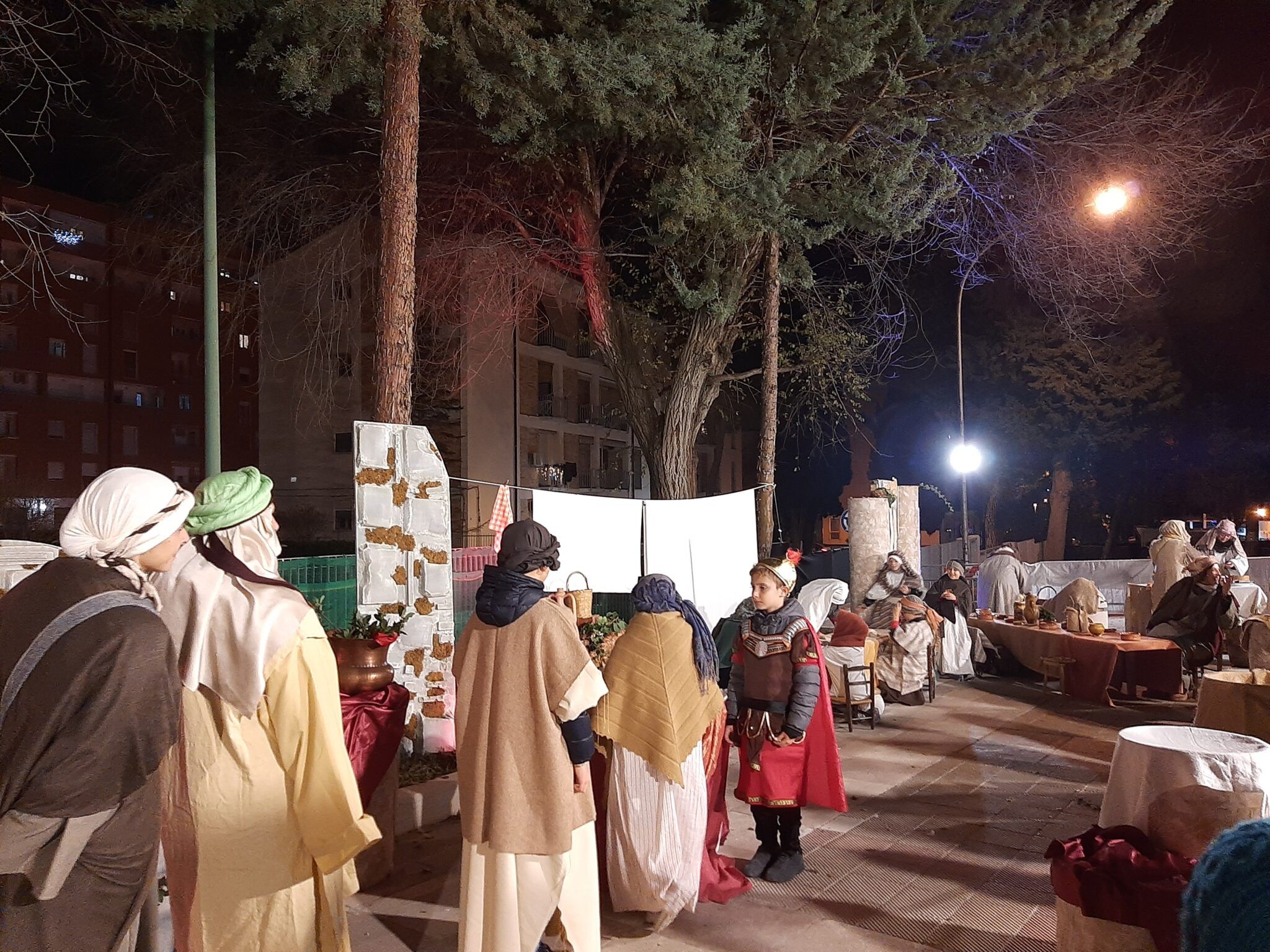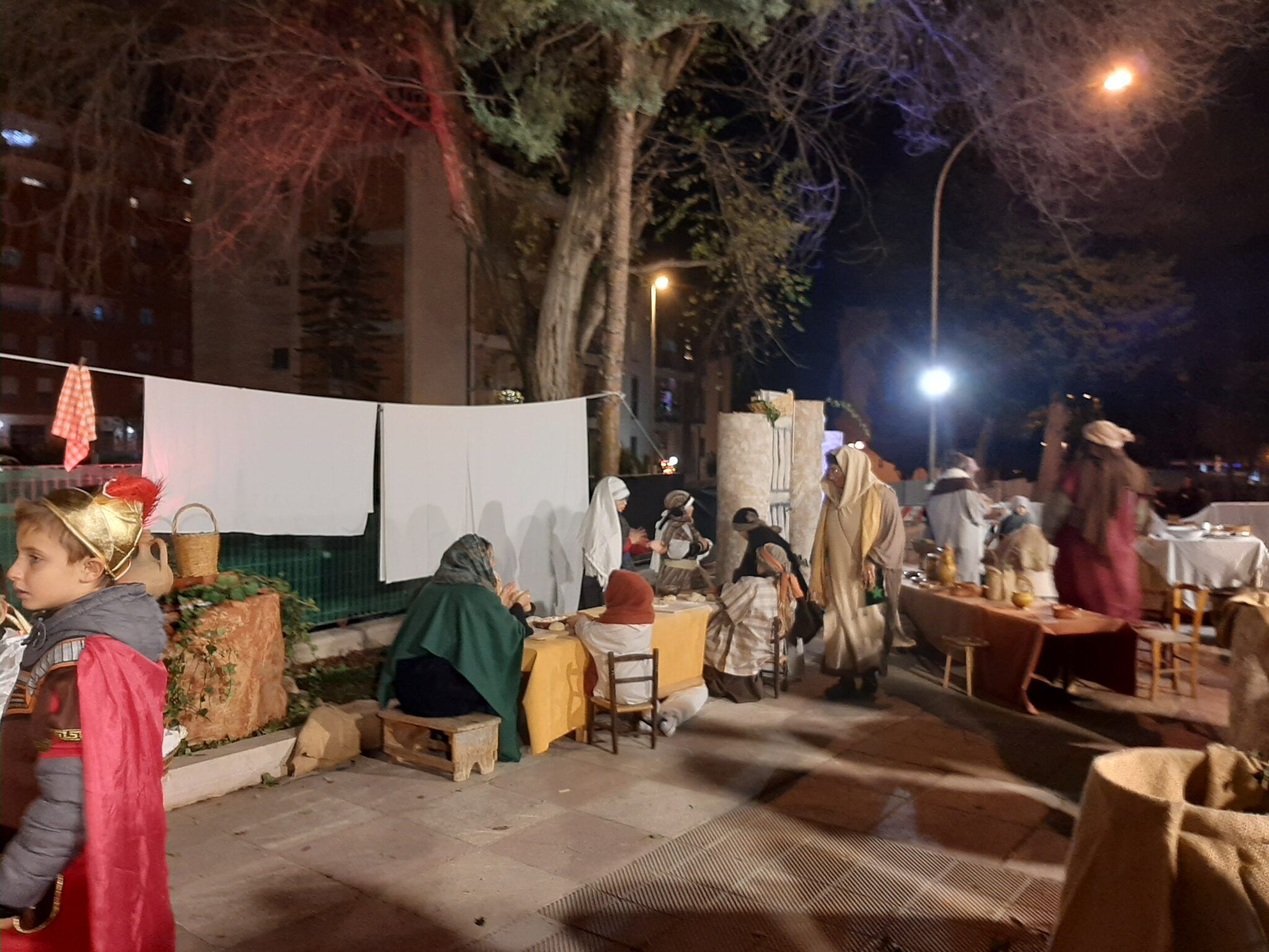 Il suo carisma e il suo entusiasmo sono contagiosi, proprio come il suo sorriso: dopo lo stop per la pandemia, don Michele La Rocca è tornato a coinvolgere grandi e piccini per l’allestimento del “Presepe vivente dei piccoli” nel piazzale antistante della parrocchia Maria SS.ma Addolorata di Matera. Nonni, genitori e bambini hanno dato vita, sotto la sua regia impeccabile – complice anche il suo background di studi: una laurea triennale in Lettere – Corso di laurea in “Letteratura, Arte, Musica e Spettacolo”, una magistrale in “Letteratura, lingua e cultura Italiana – Curriculum Filologico” e infine il Master di I livello in “Discipline Artistiche – a uno spettacolo semplice ma di grande impatto, dal quale traspare tutto l’impegno e l’energia di una comunità. Sei le scene principali: l’annunciazione dell’angelo alla vergine Maria, il sogno di Giuseppe, la vita quotidiana a Betlemme, il palazzo del censimento, la locanda e la natività. Scorci ricreati con cura – le scenografie sono firmate da Luigia Bonamassa e sono state allestite con il sostegno delle catechiste con materiale da riciclo e di scarto – che hanno stupito in modo particolare i bambini, ammirati nel guardare coetanei così calati nella parte. Non mancano, sempre per la gioia dei bimbi, gli animali veri: galline, maiali, asini, pecore.