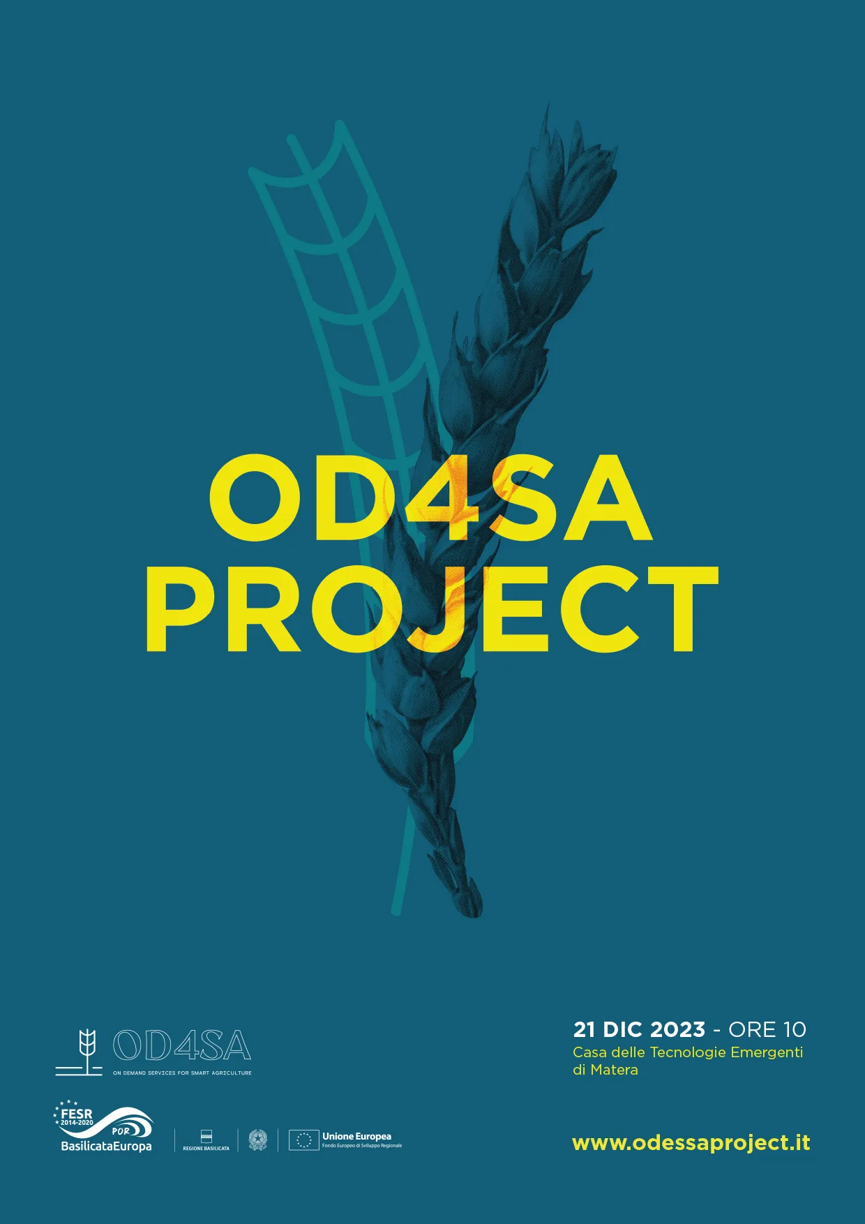 OD4SA (On DEmand Services for Smart Agriculture) è un progetto sviluppato nell’ambito del Cluster Lucano dell’Aerospazio per lo sviluppo di prodotti e servizi a supporto dell’agricoltura intelligente e di precisione, basato su strumenti, tecnologie e metodologie per l’acquisizione e l’analisi dei dati spaziali e prossimali; la trasmissione dati, attraverso l’approccio al networking innovativo; la fruizione di prodotti e servizi, attraverso una piattaforma ad architetture aperte ed interoperabili.
