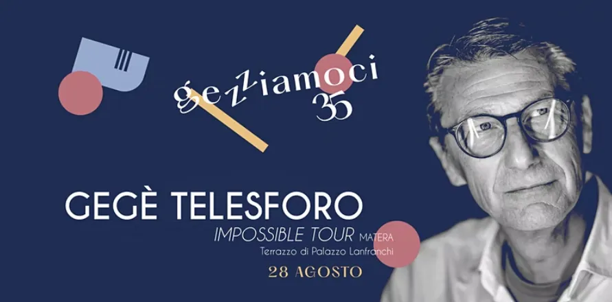 Domenica 28 agosto a Matera nel Museo Nazionale d’Arte Medievale e Moderna della Basilicata (Palazzo Lanfranchi) per Gezziamoci 35 appuntamento con Gegè Telesforo Impossible Tour: Gegè Telesforo, voce; Daniela Spalletta, voce & keys; Pietro Pancella, basso; Domenico Sanna, piano & keys e Michele Santoleri, batteria.