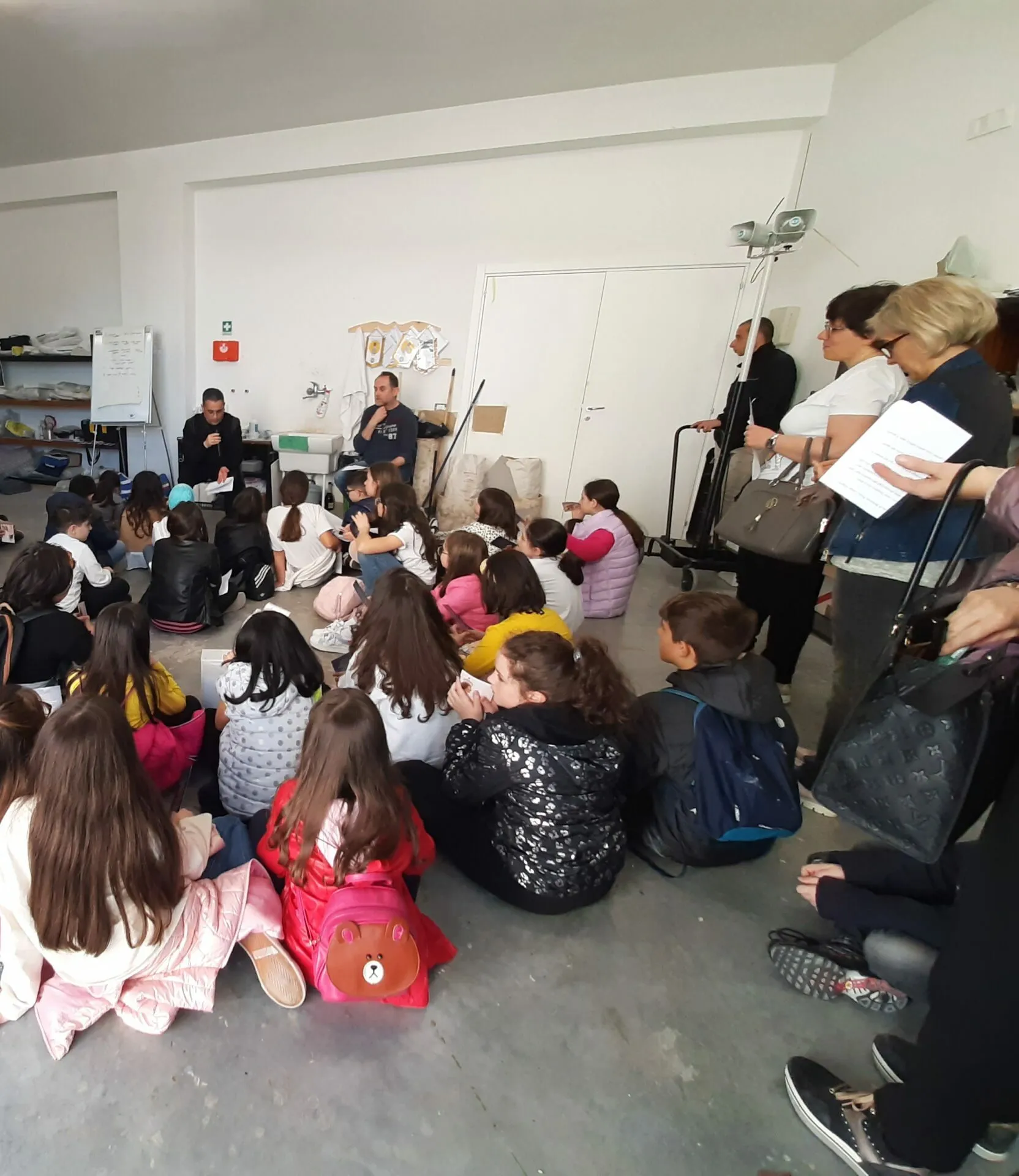 Il delegato arcivescovile don Francesco Di Marzio, don Angelo Gallitelli e due delle quattro artiste che stanno realizzando il manufatto in cartapesta, Elena Mirimao e Annalisa Di Gioia (assenti giustificate Luigina Bonamassa e Laura D’Ercole) hanno animato un incontro che ha entusiasmato i piccoli, consapevoli di star vivendo un’esperienza indimenticabile.