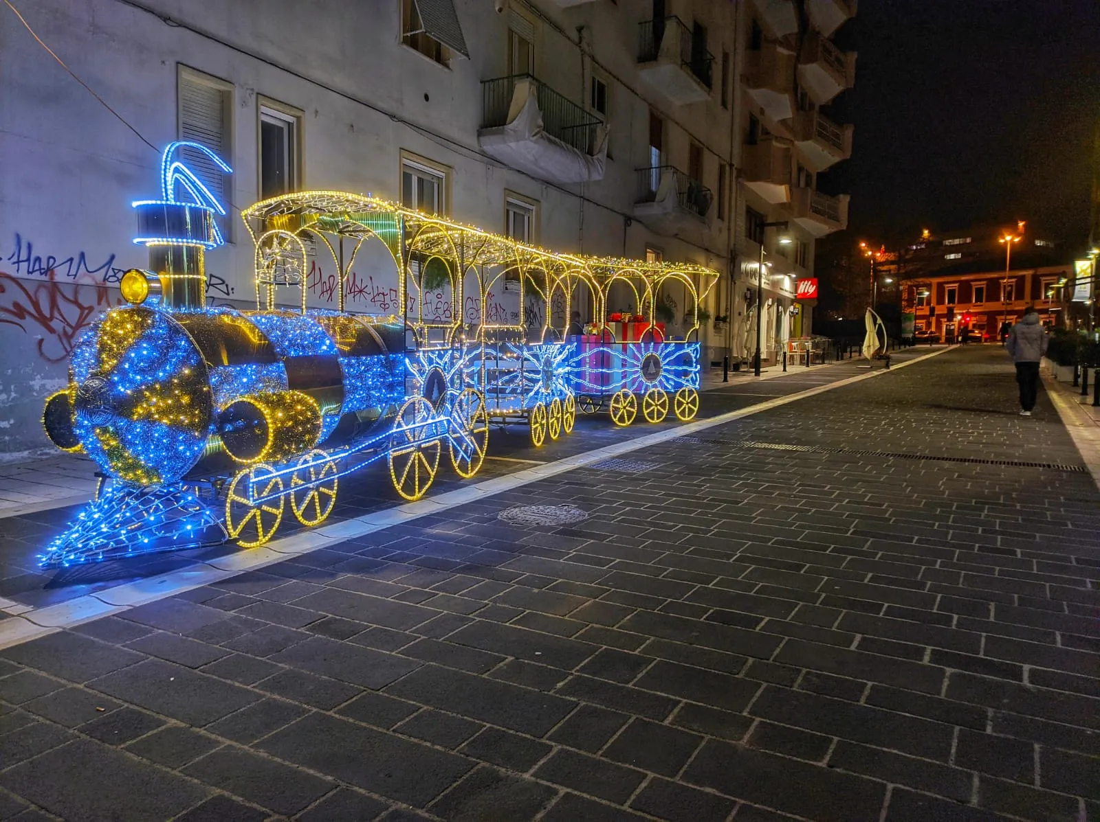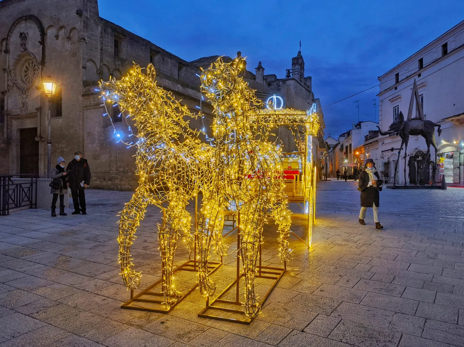 Gli scatti del fotografo Michele Morelli hanno catturato la bellezza di alcune installazioni del centro: il trenino in via Don Minzoni, una carrozza tra via Roma e gli ipogei di piazza Vittorio Veneto e i due alberi di Natale, in piazza Vittorio Veneto e di fronte la Banca Popolare del Materano. Altre installazioni anche nella Villa Comunale dell’Unità d’Italia.