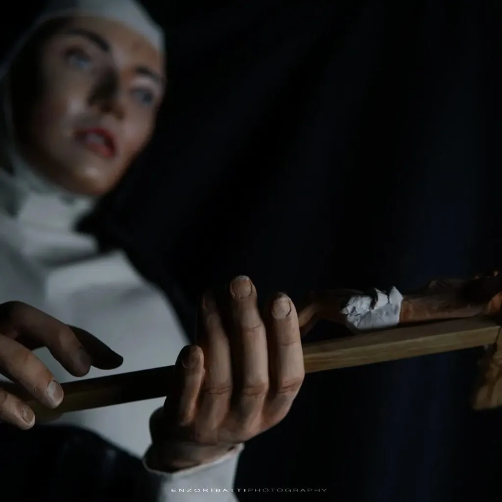 “La Santa delle cause impossibili, la Santa moglie, madre, consacrata e operatrice di pace ha ispirato e accompagnato il mio lavoro”, racconta la cartapestaia materana.