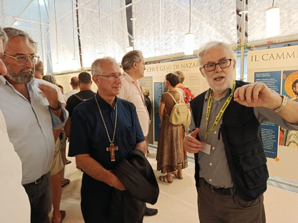 Accompagnato dagli amici cesenati, monsignor Caiazzo ha fatto visita alla mostra “Luce da luce” all’interno della quale si può ammirare il papiro di un altro cesenate protagonista al Meeting, Gianluca Bosi (cfr pezzo al link qui sotto). Tutti gli ospiti hanno potuto godere di una guida d’eccezione: li ha accompagnati il professor Leonardo Lugaresi, uno dei curatori della mostra, per decenni docente di Lettere e di latino al liceo scientifico “Righi” di Cesena.