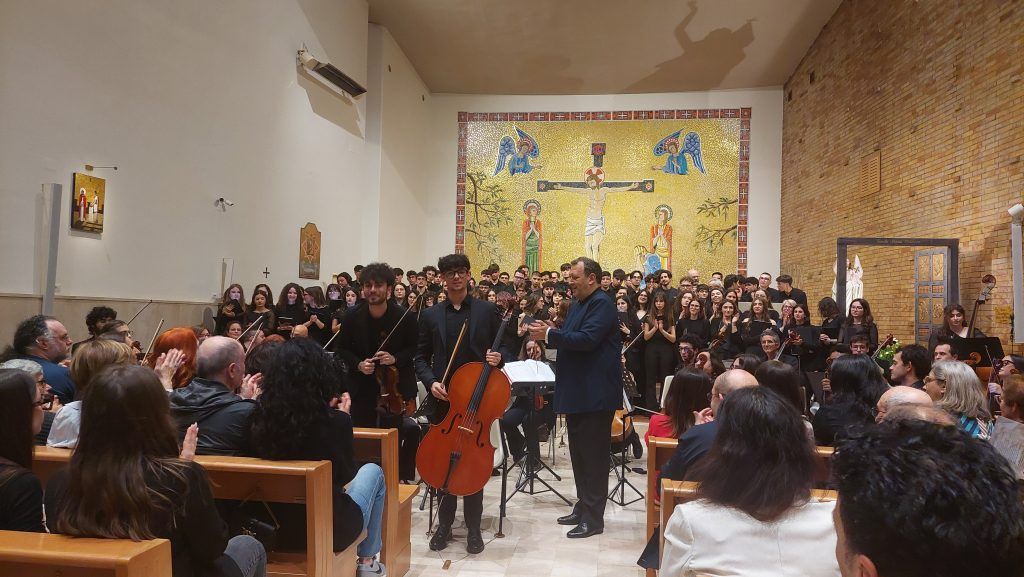 Alla fine del concerto, l’augurio di don Angelo ai giovani musicisti: “In questa vostra arte sappiate sempre metterci quel cuore che sa andare oltre, come oggi in cui avete guardato e ci avete fatto guardare oltre noi stessi, a chi vive situazioni difficili, a chi è – per dirla come il caro Papa Francesco – scartato dalla vita ma prezioso agli occhi di Dio”. Poi, il ringraziamento al Direttore del Conservatorio, prof. Carmine A. Catenazzo, nonché al maestro L. Leo e al direttore del coro M. Rondelli e a tutti i musicisti perché “la musica ci fa andare lontano e ci fa guardare il cielo dove contempliamo la bellezza dell’amore di Dio. Ma ci ha fatto gustare anche il sentimento più grande che c’è nell’animo dell’uomo, la solidarietà”.