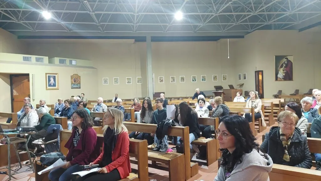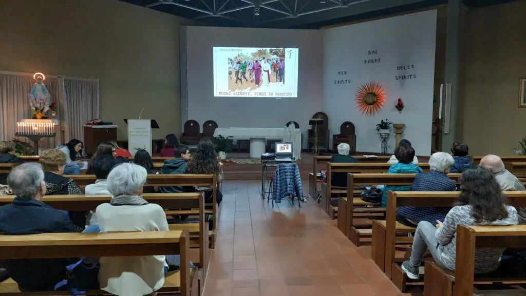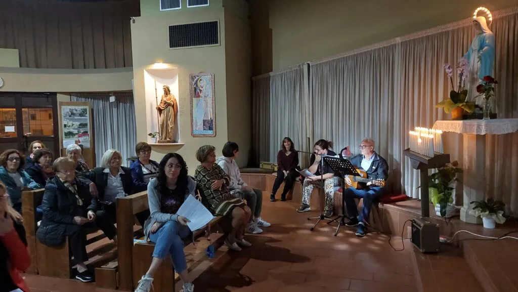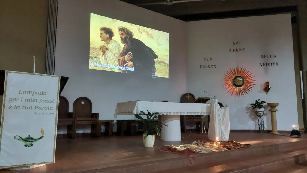 I canti e l’accompagnamento dell’ascolto con delle grandi immagini proiettate sul muro retrostante l’altare hanno aggiunto valore a questo bel momento di preghiera. Che non deve rischiare di concludersi in chiesa, ha sottolineato don Biagio nella breve riflessione finale, senza tradursi in vita.