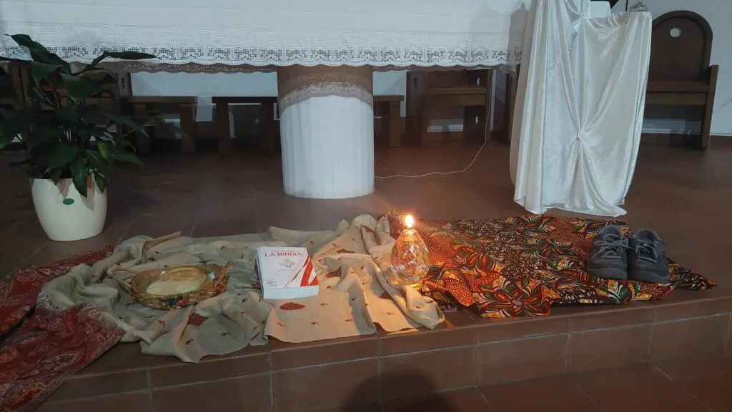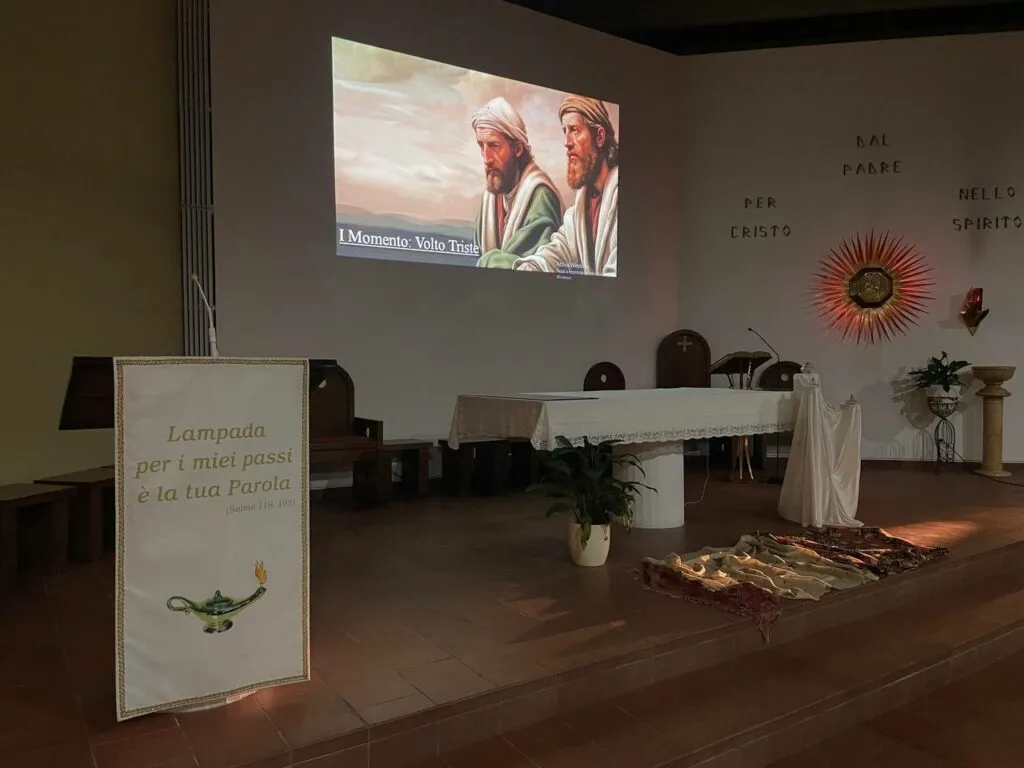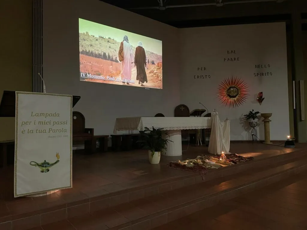 I ragazzi sono stati resi partecipi nella deposizione di un piccolo segno ai piedi dell’altare in corrispondenza di ogni momento della veglia: una lampada, luce di speranza; la Parola, al cui ascolto arsero i cuori dei due di Emmaus; una grande pagnotta, al cui spezzare si aprirono gli occhi dei discepoli; due scarpe consumate, segno dei “piedi in cammino” per portare Cristo e andare incontro ai fratelli per costruire relazioni di pace.