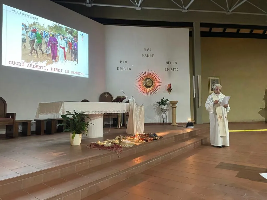 Nel silenzio orante, è stato proclamato, in ognuna di queste parti della veglia, un passaggio dell’episodio Discepoli di Emmaus (Lc 24), che dà il tema al mese missionario di quest’anno, “Cuori ardenti, piedi in cammino”, e sono proposti alla riflessione altri testi sui temi della pace e delle missioni, tra cui alcuni passi del magistero e delle catechesi di papa Francesco. Le preghiere corali, la risposta alle invocazioni, il canto hanno coinvolto l’assemblea.
