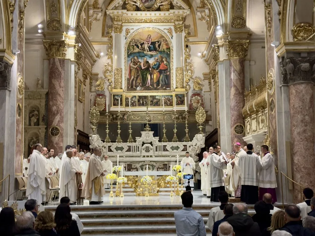 quanto stiamo vivendo e gustando in questa celebrazione eucaristica, opportunamente chiamata “messa crismale”, è la rivelazione a tutti del mistero dell’Eucaristia e del Sacerdozio. E questo perché noi tutti, rivestiti del sacramento dell’Ordine, siamo “strumenti vivi di Cristo eterno sacerdote” (Presbyterorum ordinis, 12), Capo, Pastore e Sposo della Chiesa (Pastores dabo vobis, 21-22). Per la Chiesa diocesana questa celebrazione rappresenta il momento più alto ed importante, perché vede l’intero presbiterio, in comunione con il vescovo, radunato attorno alla mensa della Parola e dell’Eucaristia. E’ la nostra partecipazione al sacerdozio di Cristo che come Chiesa italiana e universale, nel cammino sinodale, stiamo condividendo dopo aver vissuto quello diocesano.