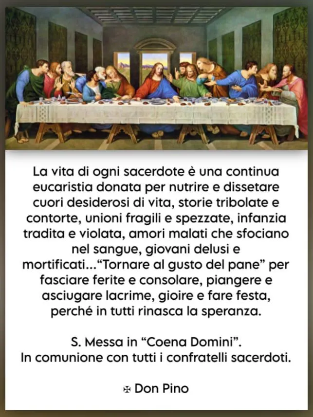 Santa Messa in Coena Domini, celebrata alle ore 17,00 da mons. Antonio Giuseppe Caiazzo in comunione con tutti i confratelli sacerdoti, con lavanda dei piedi agli ospiti della Casa di Riposo dei Trinitari di Bernalda.