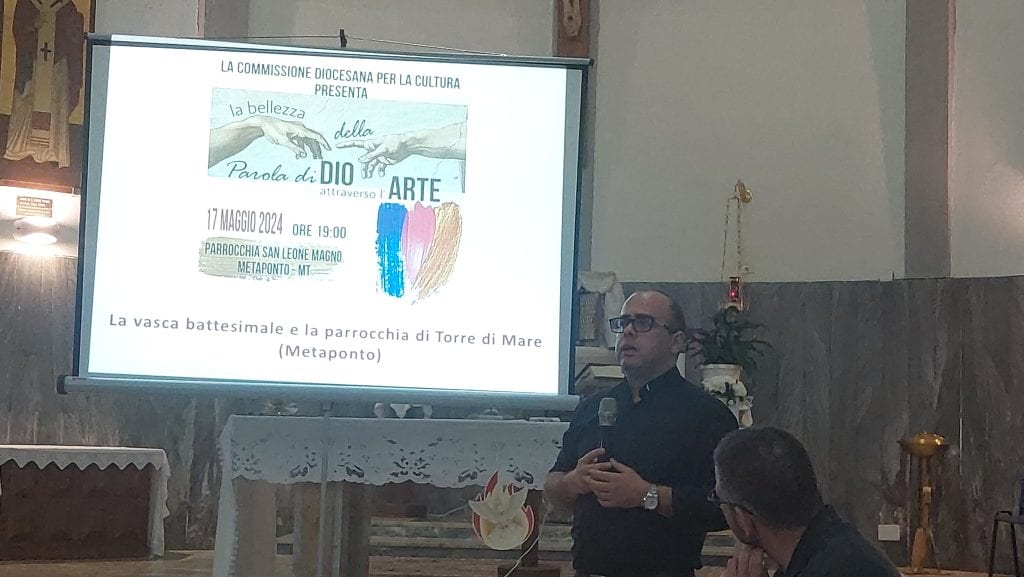 Un interessantissimo momento che la commissione diocesana per la Cultura, guidata da don Michele La Rocca, ha proposto alla comunità diocesana nell’ambito del percorso “La bellezza della Parola di Dio attraverso l’arte” è stata la presentazione di un battistero sito presso il borgo di Metaponto.