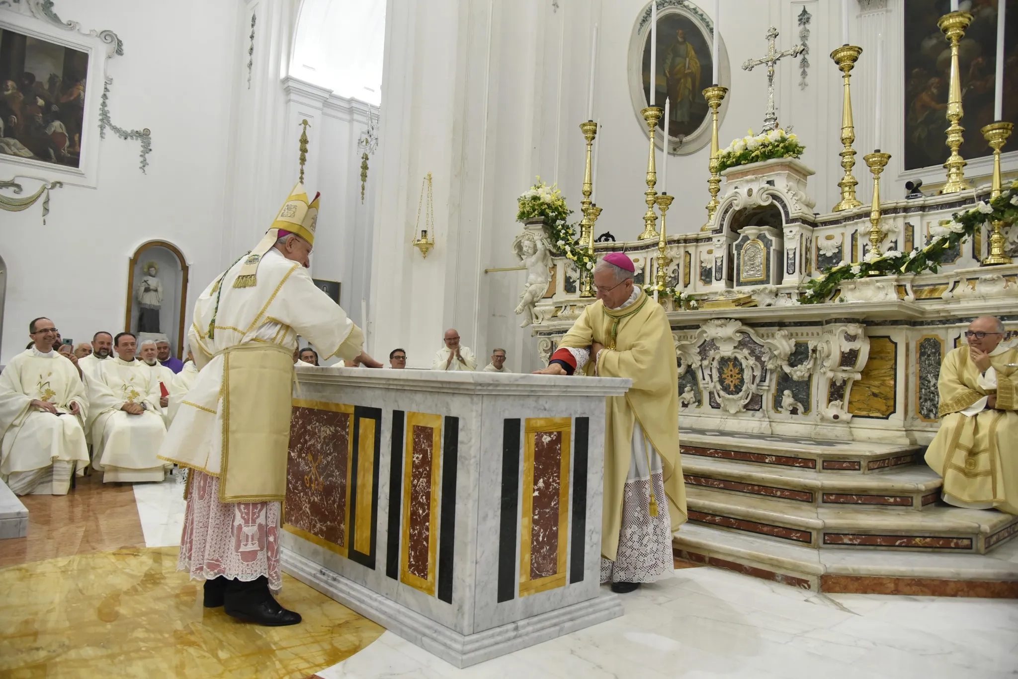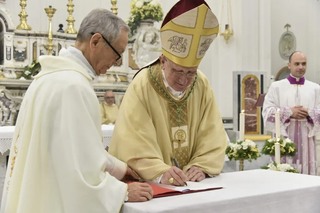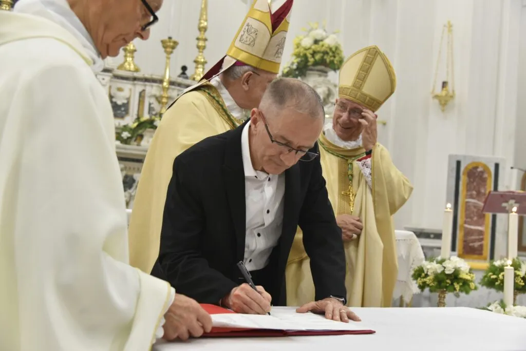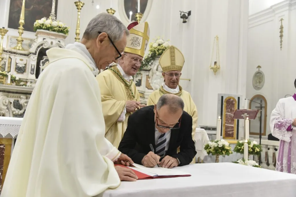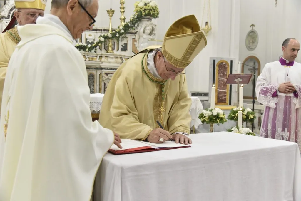 Firma atti formali per la consacrazione del nuovo altare