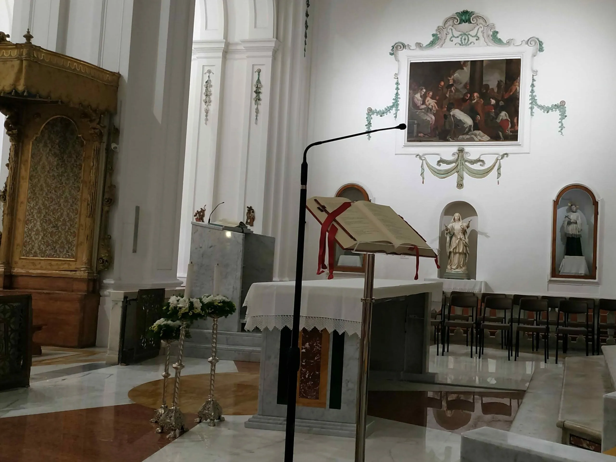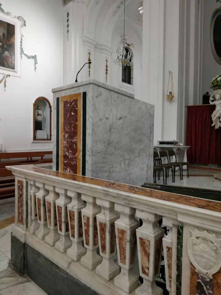 Le differenze tra “prima” e “dopo” sono evidenziate dalle seguenti foto riferite rispettivamente ad altare, ambone e sede.
