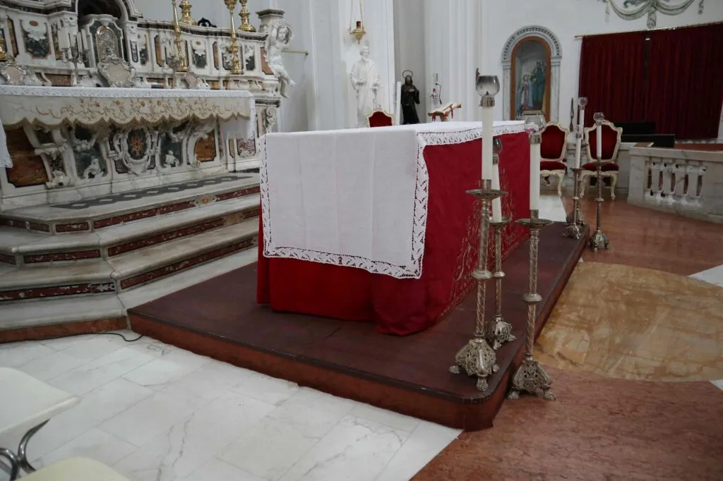 Se l’altare esistente non soddisfa a queste esigenze, occorre procedere alla progettazione di un nuovo altare possibilmente fisso e, comunque, definitivo. Preferibilmente l’altare deve essere di pietra naturale e comunque non deve essere trasparente. L’altare preesistente va mantenuto senza tovaglia e le reliquie presenti devono essere asportate, se ciò è possibile.