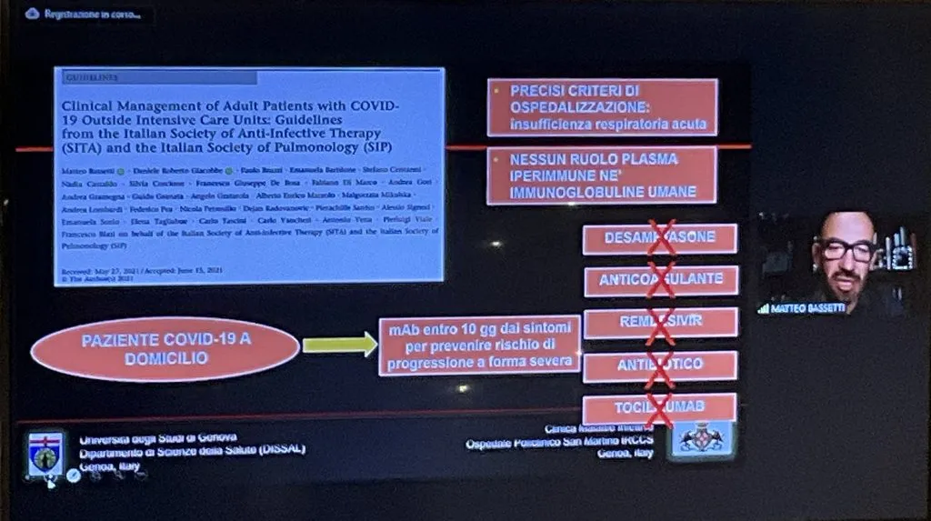 Il Prof. Matteo Bassetti Direttore della Clinica di Malattie infettive dell’Ospedale San Martino di Genova ed autore di 85 pubblicazioni scientifiche sulla terapia del Covid ha partecipato in videoconferenza al Convegno promosso dal Tribunale dei diritti e dei doveri del medico di Matera.
