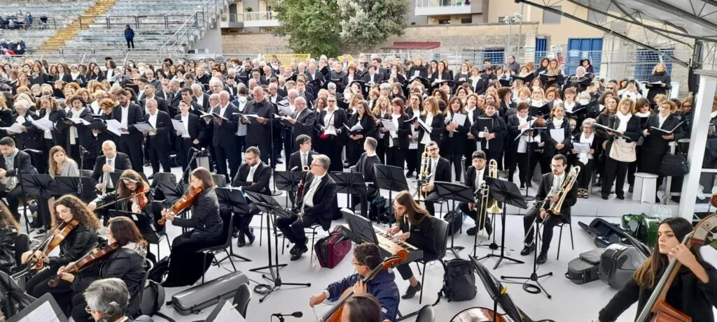 Durante la Messa celebrata da Papa Francesco il 25 settembre nello stadio comunale della città dei Sassi i partecipanti ai 56 cori parrocchiali della Diocesi di Matera-Irsina avevano cantato accompagnati dalla Orchestra sinfonica di Matera, diretta dal maestro Carmine Antonio Catenazzo, appena riconosciuta dal Ministero della Cultura quale Istituzione Concertistica Orchestrale.