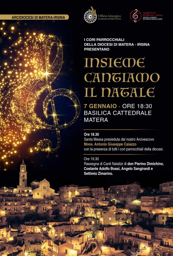 Il prossimo 7 gennaio tutti i cantori si ritroveranno nella Cattedrale di Matera alle 18,30 per una celebrazione eucaristica presieduta dall’Arcivescovo Mons. Antonio Giuseppe Caiazzo.