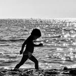 Ho ripreso allora ad osservare la foto in bianco e nero che avevo scelto ancor prima di dare un titolo al mio nuovo editoriale: un bimbo che corre da solo sul limitare tra la sabbia e le onde che si smorzano a riva. Sullo sfondo l’accecante bagliore del sole e una distesa enorme di acqua.
