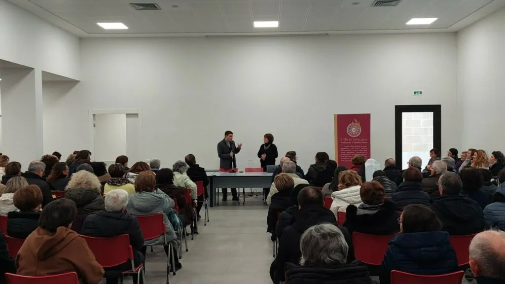 Don Antonio Di Leo, Direttore dell’Ufficio Liturgico Diocesano, presenta la relatrice, prof. Rosanna Virgili