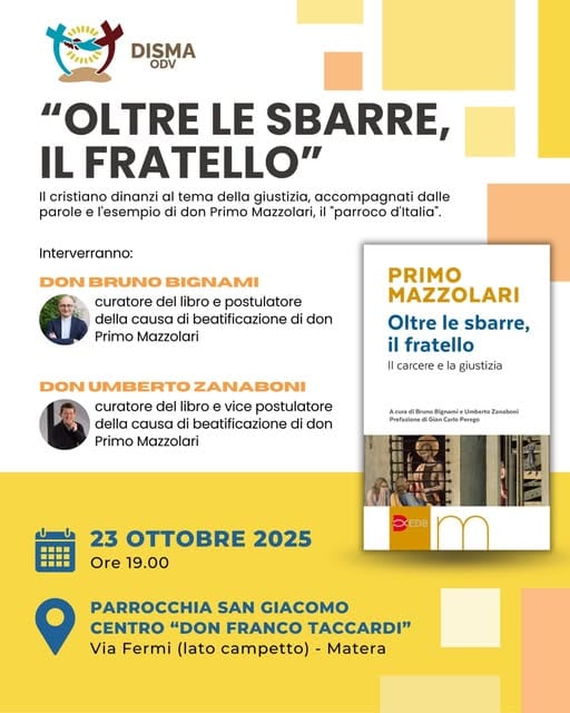 Organizzato dall’Associazione Disma, l’incontro si svolgerà all’insegna del pensiero e delle riflessioni di don Primo Mazzolari, definito il parroco d’Italia, sul tema della dignità di chi ha sbagliato. Infatti, nelle sue elaborazioni don Mazzolari fa riferimento ad un viaggio scomodo, ma necessario: invita a guardare oltre le sbarre per riconoscere nei carcerati, prima della colpa, la persona.