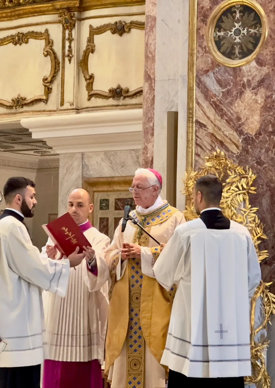 Sono grato al Signore per questa celebrazione che la paternità e l’affetto dell’arcivescovo Pino mi permette di presiedere. Come sacerdote materano di questa chiesa sono orgoglioso e onorato, contento e ringrazio la Madonna della Bruna per avermi sempre accompagnato nella fede e vita cristiana. Ringrazio i confratelli sacerdoti, tutti i seminaristi, la chiesa materana; ringrazio le autorità civili e militari e tutto il popolo di Dio, sempre affettuosi e accoglienti del mio cammino e della mia presenza.