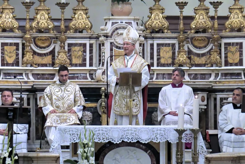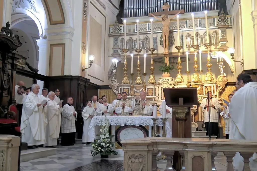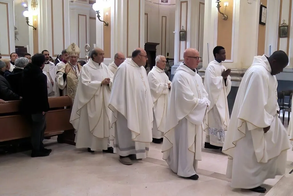 Vi chiedo di pregare per coloro che sono impediti ad essere presenti a questa celebrazione solenne a causa delle loro condizioni di salute precarie, come Mons. Rocco De Cicco e D. Leonardo Verri, o per anzianità, come D. Michele Pandolfi, Mons. Paolo Ambrico e D. Domenico Chirico; tra i missionari P. Vittorio Infantino; Mons. Stefano Sanchirico Prefetto dell’archivio apostolico e recentemente nominato Cappellano di Gran Croce dell’Ordine di Malta.