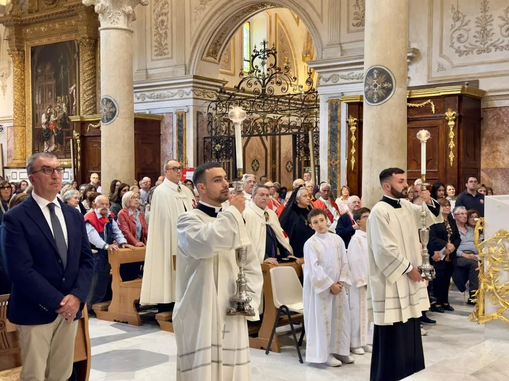 Con le parole di Benedetto XVI “mi rivolgo particolarmente a voi, cari sacerdoti, che Cristo ha scelto perché insieme a Lui possiate vivere la vostra vita quale sacrificio di lode per la salvezza del mondo. Solo dall’unione con Gesù potete trarre quella fecondità spirituale che è generatrice di speranza nel vostro ministero pastorale. Ricorda san Leone Magno che “la nostra partecipazione al corpo e al sangue di Cristo non tende a nient’altro che a diventare ciò che riceviamo” (Sermo 12, De Passione 3,7, PL 54). Se questo è vero per ogni cristiano, lo è a maggior ragione per noi sacerdoti. Divenire Eucaristia! Sia proprio questo il nostro costante desiderio e impegno, perché all’offerta del corpo e del sangue del Signore che facciamo sull’altare, si accompagni il sacrificio della nostra esistenza. Ogni giorno, attingiamo dal Corpo e Sangue del Signore quell’amore libero e puro che ci rende degni ministri del Cristo e testimoni della sua gioia. È ciò che i fedeli attendono dal sacerdote: l’esempio cioè di una autentica devozione per l’Eucaristia; amano vederlo trascorrere lunghe pause di silenzio e di adorazione dinanzi a Gesù come faceva il santo Curato d’Ars”.