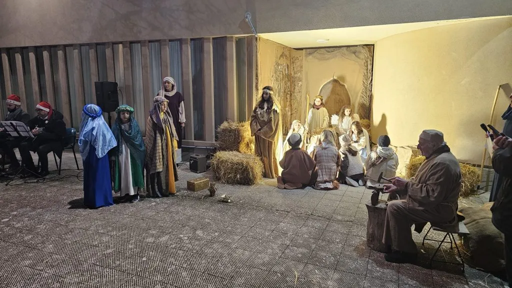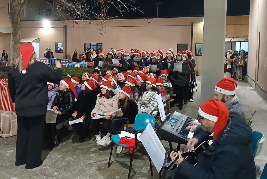 Un percorso che si è snodato lungo il perimetro della chiesa a partire dal campo da calcio, accompagnato dalle musiche di Nativity, sin nel cortile adiacente l’ingresso laterale della chiesa dove è stata rappresentata la natività. All’espressività già insita nelle scene si è aggiunta una voce narrante fuori campo. Nel cortile infine, hanno accompagnato la scena i coristi, piccoli e grandi, con alcuni pezzi natalizi: l’ultimo, “Astro del ciel”, in riferimento alla stella e capace di coinvolgere tutti.
