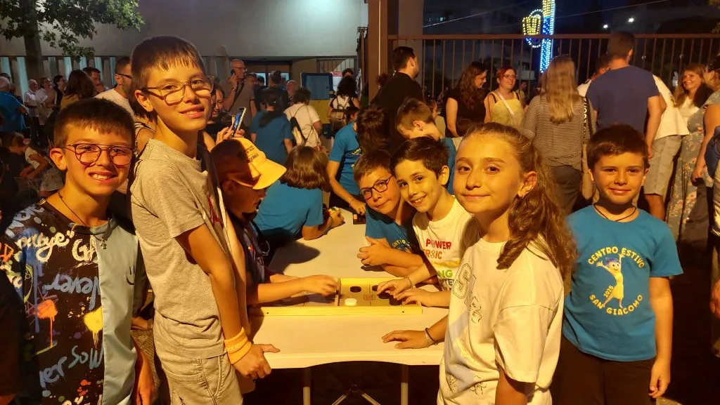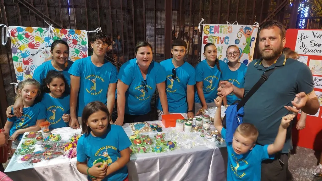 La festa continua fuori: c’è il mago, zio Ludovico, pronto a coinvolgere grandi e piccoli, mentre nei diversi spazi del cortile che affianca la chiesa, tra trampoli, corde da sbrogliare, carte da gioco, tavoli da ping pong… ci sono giochi per tutti i gusti e c’è anche la bancarella che animatori e bimbi del grest hanno allestito con i lavoretti realizzati al mattino. E mons. Benoni, felice di incontrare il suo gregge, non trova tregua: chi gli chiede una foto, chi tiene a presentarsi, chi non sa fare a meno di raccontargli qualcosa.