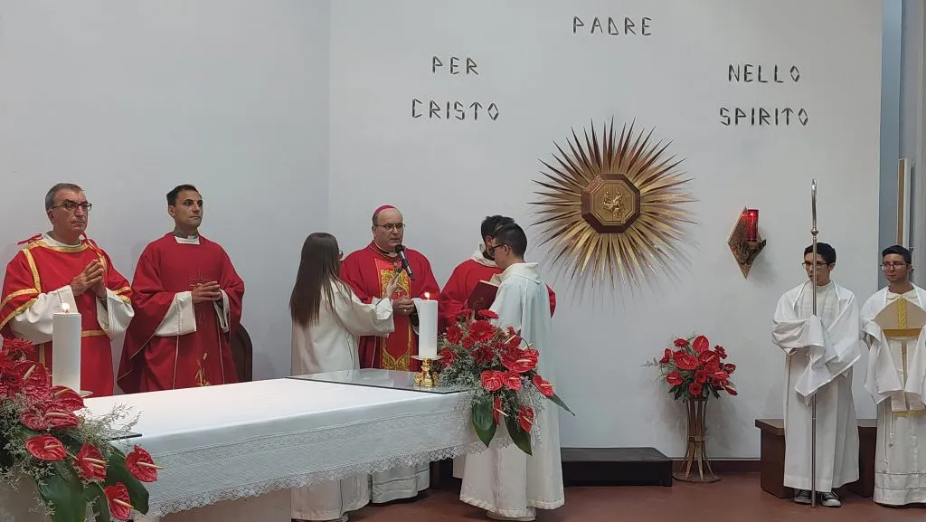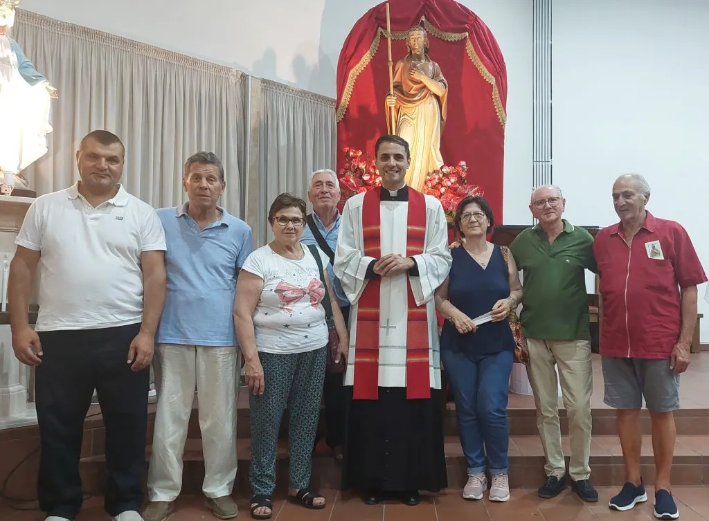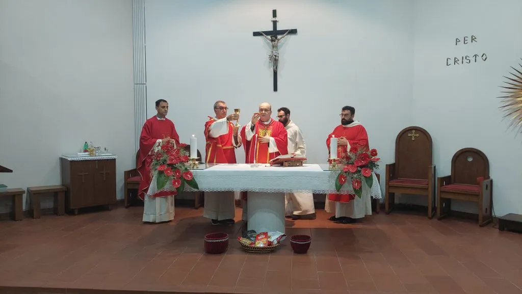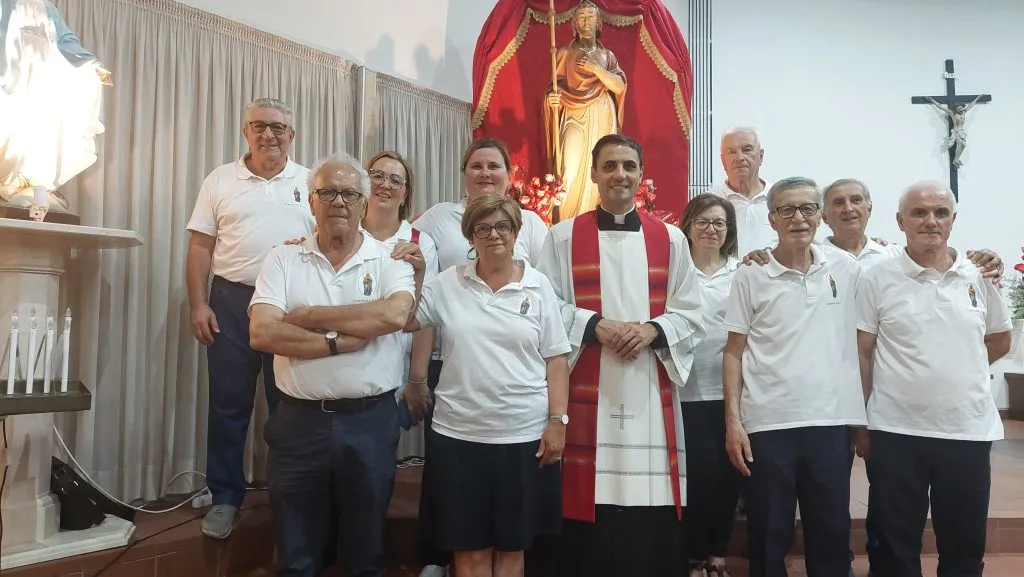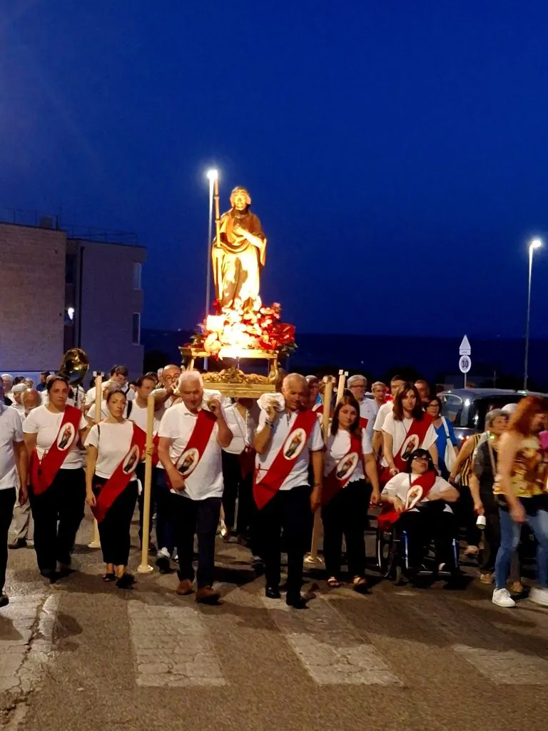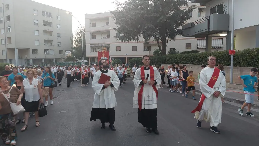 Il baldacchino rivestito di velluto rosso su cui viene sistemata la statua del santo nell’ala sinistra del presbiterio, i fiori rossi sull’altare, l’aula liturgica che viene pulita a nuovo, il coro che prova e riprova, anche con i bambini che animeranno la prima celebrazione del triduo, i ministranti che, fedeli ed entusiasti, giungono per tempo in sacrestia… All’opera sino all’ultimo, parroco e collaboratori parrocchiali, per accogliere i quattro vescovi che presiederanno le celebrazioni del triduo e del giorno vero e proprio della festa, mentre il popolo di Dio giunge in chiesa con tante attese dalle sue case.