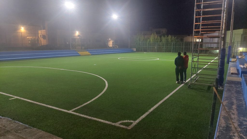 Lavori di manutenzione straordinaria della durata di poco più di due settimane – a tamburo battente e comprese le giornate di maltempo – che si sono resi necessari dopo nove anni dalla realizzazione del primo manto erboso sintetico. I materiali sono stati forniti da una ditta nazionale del settore, Radici Sport, mentre i lavori sono stati eseguiti dalla società Mario Sport di Locorotondo, con la direzione dei lavori a cura dell’ing. Pietro Cascione, con una prestazione gratuita per cui la parrocchia esprime il suo sincero ringraziamento.