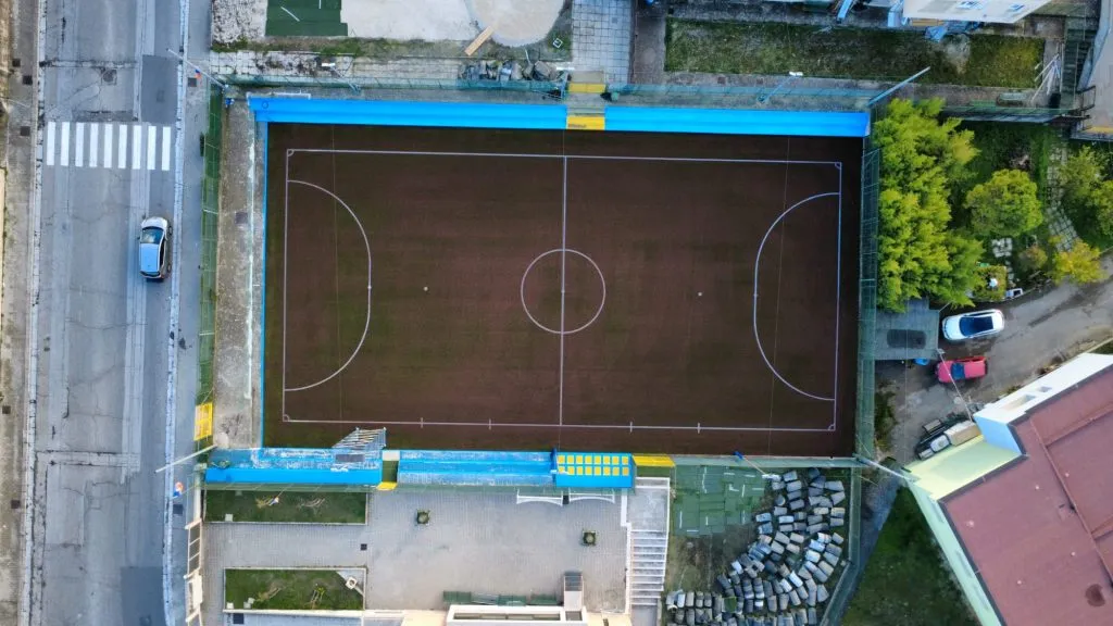Ancora qualche ora di lavoro e il campetto annesso alla parrocchia di San Giacomo sarà pronto per essere riconsegnato alla comunità in tutto il suo splendore: le gradinate riparate e pitturate di un bellissimo giallo-azzurro, il nuovo manto erboso sintetico tanto soffice e pulito che qualcuno dei giocatori vorrebbe correrci scalzo, le reti e le porte – in corso di montaggio in queste ore – che dispiacerà colpire nelle prime partite.