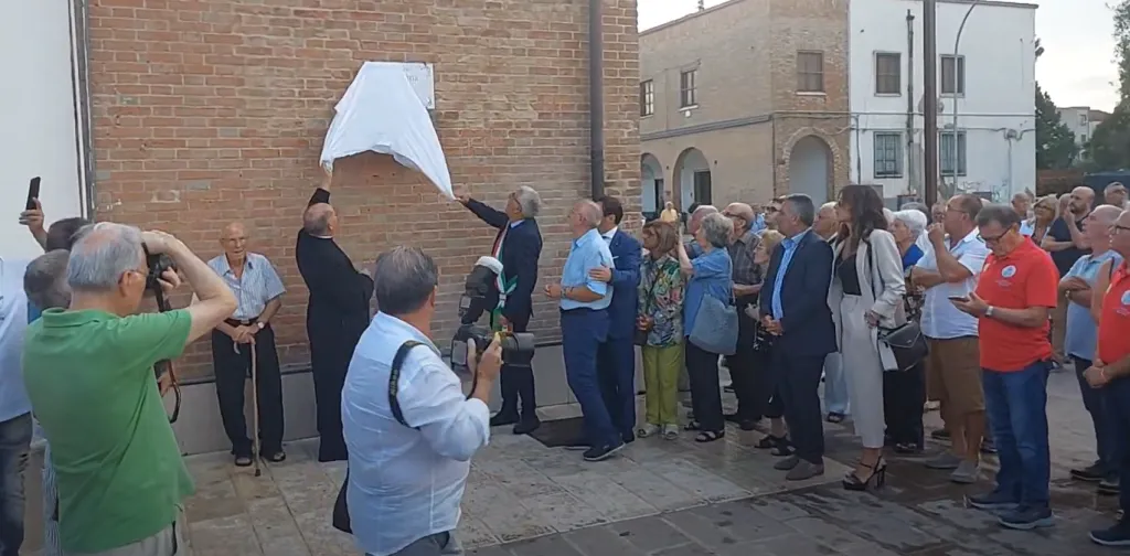 Su via Ontario, una rappresentanza della comunità locale – il parroco mons. Filippo Lombardi, il sindaco di Pisticci dott. Donato Albano, il comitato feste e i portatori della Madonna delle Grazie, patrona della comunità marconese – ha accolto il card. De Donatis alle 18:30 e l’ha accompagnato nella nuova piazza Madonna delle Grazie: un nuovo spazio riqualificato dal comune di Pisticci, abbellito da una fontana, un’area da vivere e un luogo di aggregazione, un’appendice al sagrato della chiesa, che il presule ha benedetto, dopo che parroco e sindaco hanno svelato la targa. E a chi ha realizzato e a chi la vivrà la nuova piazza si rivolgono le parole della benedizione.
