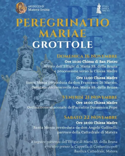 Dopo la celebrazione eucaristica, l’effigie di Maria SS della Bruna rientrerà a Matera presso la Cappella della Madonna di Costantinopoli della Basilica Cattedrale.
