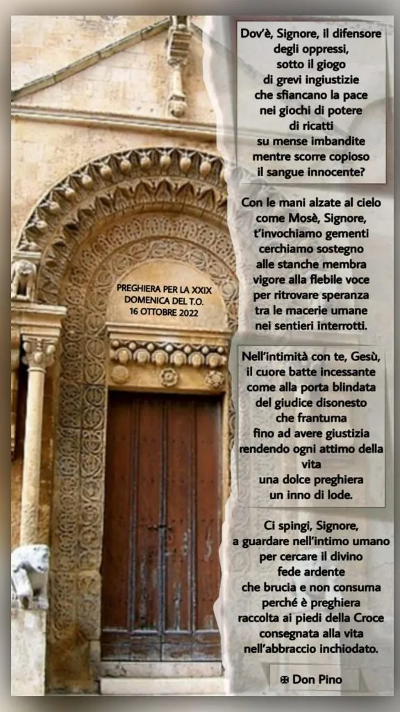 Preghiera dell’arcivescovo mons. Antonio Giuseppe Caiazzo per la Ventinovesima Domenica del tempo ordinario.