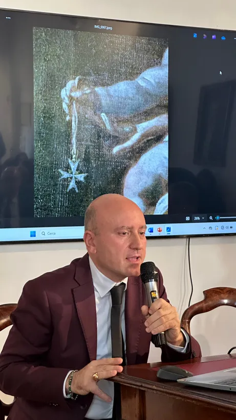 Sono seguite le presentazioni di Don Donato Giordano, docente di patrologia presso la Facoltà teologica pugliese che ha trattato dei legami storici dell’Ordine di Malta con la Basilicata e di Gabriele Scarcia, critico d’arte ed ideatore del progetto, che ha illustrato gli aspetti stilistici e storici, alcuni inediti, della tela del Cavalier calabrese.