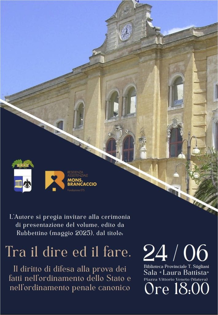 Presenteranno il volume Nicola Buccico, avvocato cassazionista del Foro di Matera, Carlo Fusco, avvocato cassazionista del Foro di Roma e Nicola Raucci, avvocato del Foro di Matera.