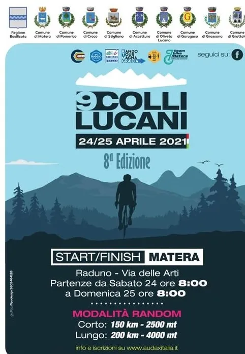 A partire da domani, sabato 24 aprile, dalle ore 8 e fino alle ore 8 di domenica 25 aprile è in programma la partenza della Randonnèe “Nove Colli Lucani” organizzata da Team Bike Matera.