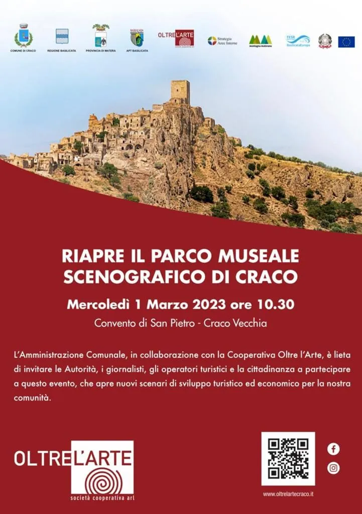 Oggi alle ore 10.30, al Convento di San Pietro di Craco Vecchia è in programma la cerimonia ufficiale di riapertura del Parco Museale Scenografico, alla presenza dei rappresentanti istituzionali della Regione Basilicata, della Provincia di Matera, dell’APT Basilicata.