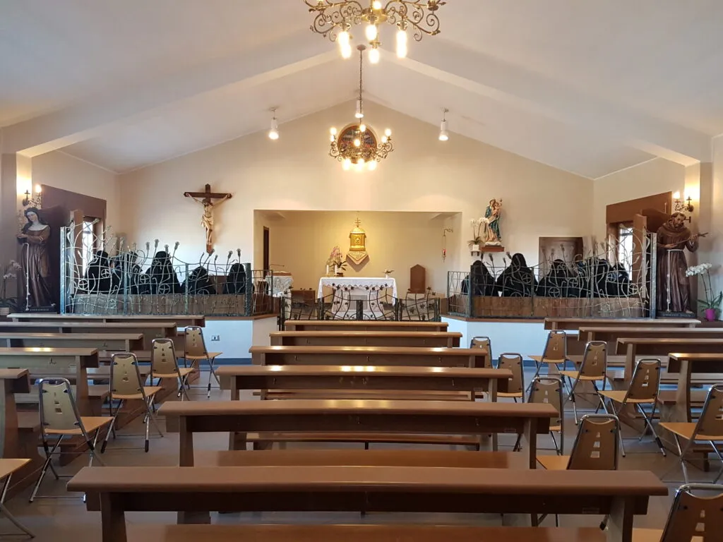 Non c’era niente su questa collina: ora c’è una comunità, dedita alla preghiera costante e quotidiana, al lavoro. Il nostro lavoro riguarda soprattutto la preparazione di biscotti, marmellate, liquori, decorazione di ceri pasquali e confezioni di bomboniere. Molto importante per noi l’accoglienza di gruppi e di singole persone che si accostano al Monastero per pregare, conoscere la spiritualità clariana e per essere ascoltati.