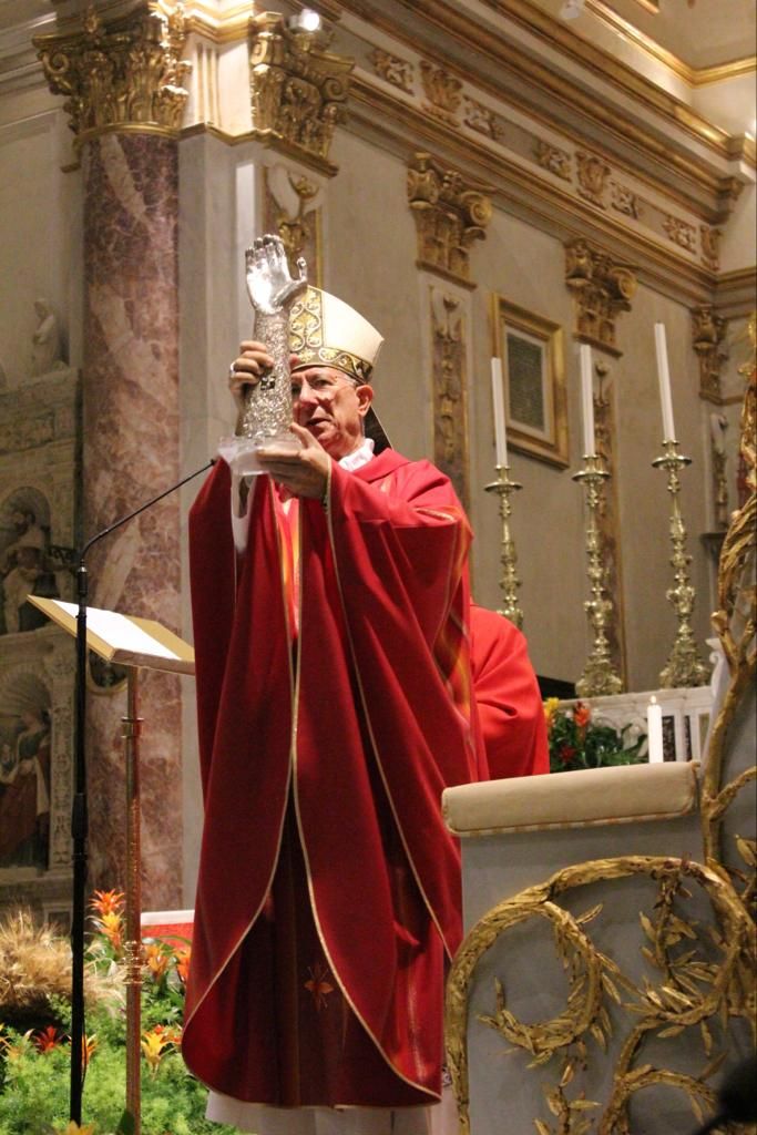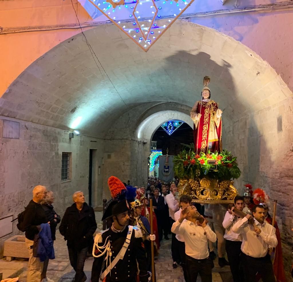Su parte dell’area appartenente ai benedettini fu edificata la cattedrale, i cui lavori furono ultimati nel 1270; fin da allora la nuova Chiesa Madre fu indifferentemente intitolata a Sant’Eustachio e a Santa Maria. Una parte dello spazio occupato dalla preesistente antica chiesa di Sant’Eustachio, posta più o meno nello spazio-corridoio tra la cattedrale e il Museo Diocesano, tra la fine del XVI e l’inizio del XVII sec. divenne il luogo usato dai mastri campanari per la fusione delle campane, per questo ancora adesso esso è denominato “corridoio delle campane” o “di Sant’Eustachio”. Va precisato, infine, che il culto di sant’Eustachio è diffusissimo, tanto che in Italia sono almeno una quindicina i luoghi in cui egli è venerato, tra i quali una basilica minore a Roma, a Campo Marzio, là dove subì il martirio, e l’église Saint-Eustache a Parigi, una delle più importanti della capitale francese. Un santo, perciò, molto famoso che è doveroso rivalutare, non fosse altro perché è parte importante e integrante della cultura materana da ben 1300 anni e soprattutto perché ha ancora molto da insegnare, specialmente quando lo ammiriamo inginocchiato davanti al cervo “sacro” che esibisce magnifiche corna ramose che, ogni anno perdute, ogni anno ricrescono con un ramo in più, a simboleggiare un’esistenza che si arricchisce utilizzando le energie, rafforzate dalla fede, generate anche dalle fatiche e dalle sofferenze quotidiane.