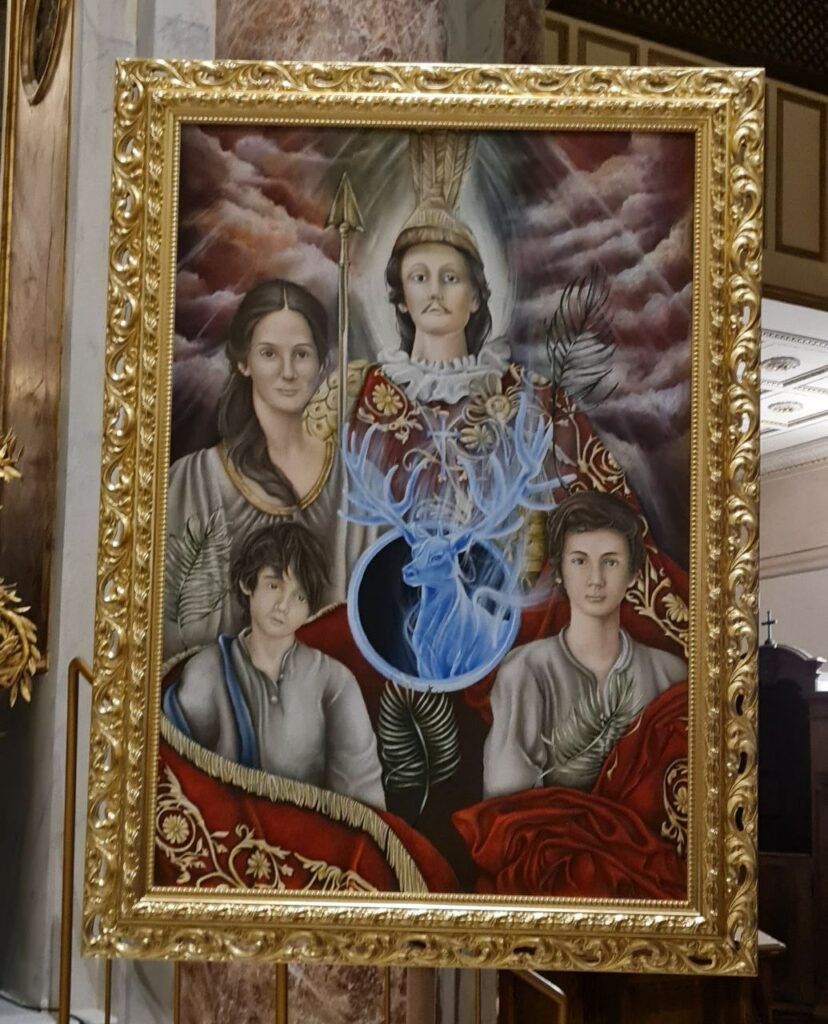 Quanto al toro che compare nell’iconografia, oltre a ricordare la modalità del martirio dei santi in quello di bronzo arroventato, si sa che esso rappresenta la forza, il potere; ma, nel nostro caso, è chiaro come sia stata la fede dei martiri a vincere la forza bruta, dal momento che il toro infuocato non distrusse neanche un loro capello. Si ricorderà, poi, che in ambito pagano quell’animale era associato a diverse divinità, per esempio a Zeus, il padre degli dèi greci; ebbene la vittoria della “santità” di Eustachio e familiari sulla “brutalita” dell’imperatore Adriano appare come vittoria della fede cristiana su quella pagana.