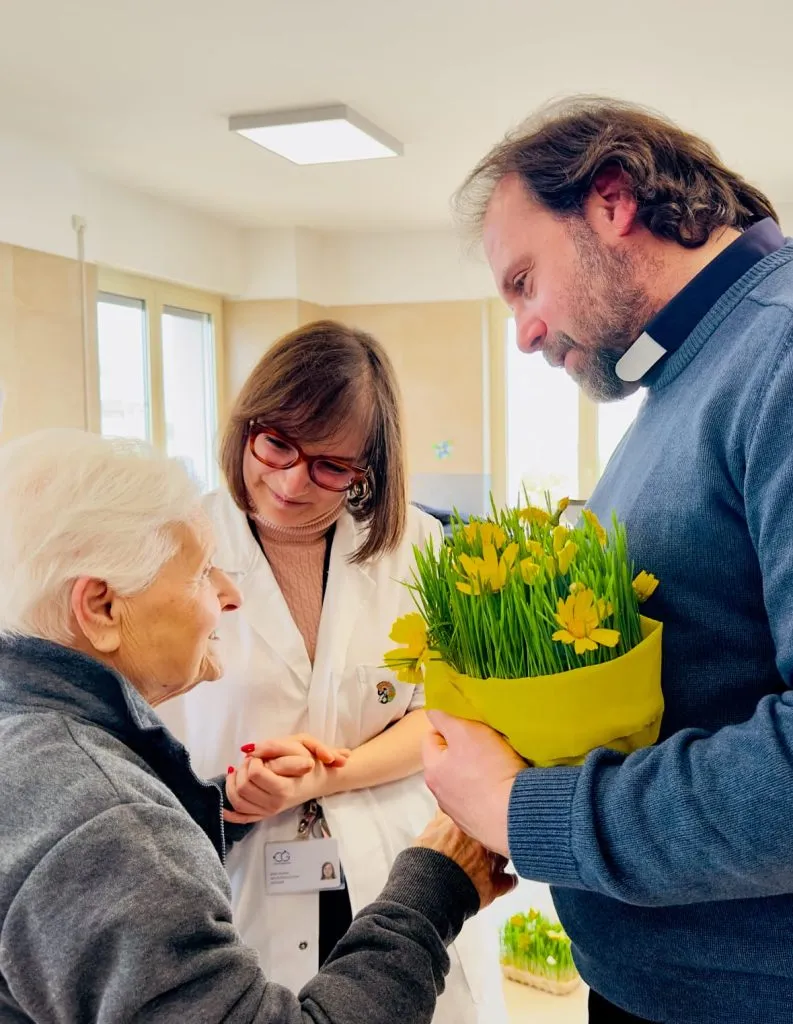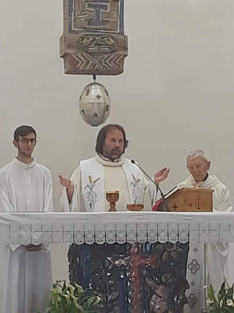 “Carissimo don Gianpaolo, sei entrato nelle nostre vite come un uragano, come un fulmine a ciel sereno. A volte non ci siamo capiti, abbiamo discusso e poi appianato ogni divergenza, venendoci incontro e ascoltandoci. Piano piano abbiamo imparato a conoscerti e a leggere dietro i tuoi sorrisi il dispiacere per una comunità spesso assente, a capire le tue incertezze a volte mascherate dalle battute e a volerti bene con i tuoi pregi e i tuoi difetti. Nessuno di noi è perfetto, ma lo stare insieme nel nome di Gesù ci rende più forti nello spirito e nel corpo. Tu ci sproni a fare sempre meglio e per questo ti saremo sempre grate. Grazie per tutto quello che fai ogni giorno per la nostra comunità, ti auguriamo di vero cuore ogni bene. Che il Signore ti conceda la salute e la forza per accompagnarci in questo cammino di fede. Auguri di cuore. Felicia”.