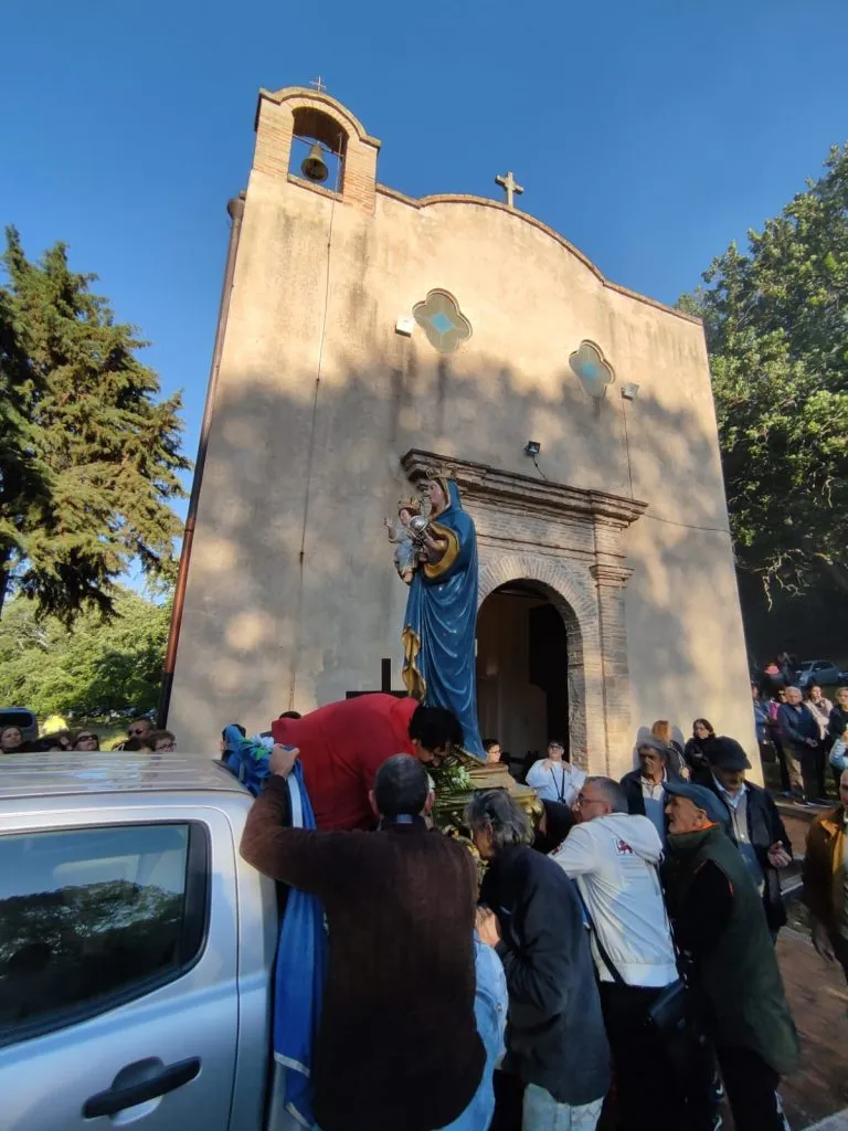 Una volta arrivati i pellegrini alla chiesetta, l’effige della Madonna del Monte viene posizionata su un fuoristrada e portata in paese accompagnata da tutta la comunità suonando i clacson delle auto in segno di festa.