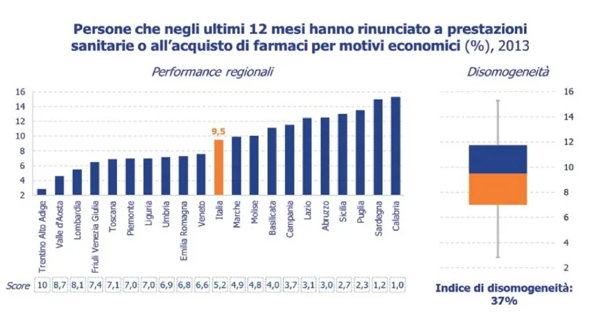 La rinuncia alle cure sanitarie, intesa anche come rinvio di accertamenti e visite specialistiche a tempi migliori, ha interessato complessivamente il 15% delle famiglie italiane ma andando nel dettaglio ha coinvolto 27 famiglie povere su cento contro 13 su 100 di famiglie non indigenti.