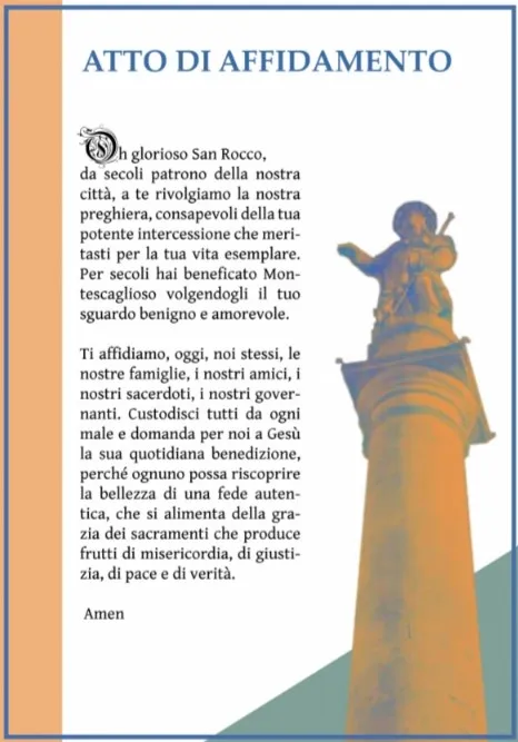 Auguro a tutti noi che S. Rocco ci ispiri a riscoprire la vera umanità, la fraternità dal volto nuovo e universale, capace di promuovere la giustizia e la pace.
