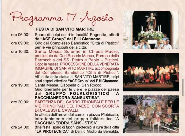 Poi nel corso del tempo fu aggiunto un altro compatrono, S. Vito Martire, festeggiato il 17 agosto.