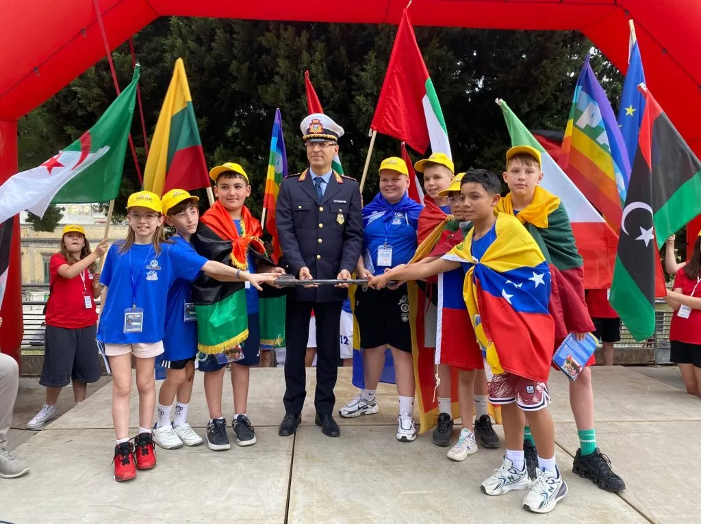 La cerimonia è entrata nel vivo con l’intervento della Curia di Matera, affidato al delegato arcivescovile don Francesco Di Marzio, che ha preso subito l’attenzione e coinvolto i ragazzi con il suo spirito e la sua capacità comunicativa. Hanno fatto seguito i saluti della dottoressa Emma Ivagnes Questore di Matera, del Comandante dei Vigili del Fuoco di Matera l’ingegner Amalia Tedeschi, del Sindaco di Cassano delle Murge Davide Del Re, del Coordinatore regionale di Sport e Salute, Matteo Trombetta e del Componente Nazionale del Collegio dei Probiviri del Centro Sportivo Italiano, Cristoforo Di Cuia. A conclusione, l’intervento commovente e partecipato di Claudio Nuzzaci, figlio di Carmine al quale è dedicato il torneo. La cerimonia della consegna delle chiavi della città, affidata al Comandante della Polizia Locale, Colonnello Paolo Milillo ha preceduto la lettura della “promessa del miniatleta” in sei lingue diverse: inglese (letta dall’atleta lituano), spagnolo (Venezuela), Arabo (Libia), serbo (Bosnia Erzegovina), francese (Algeria) e italiano.
