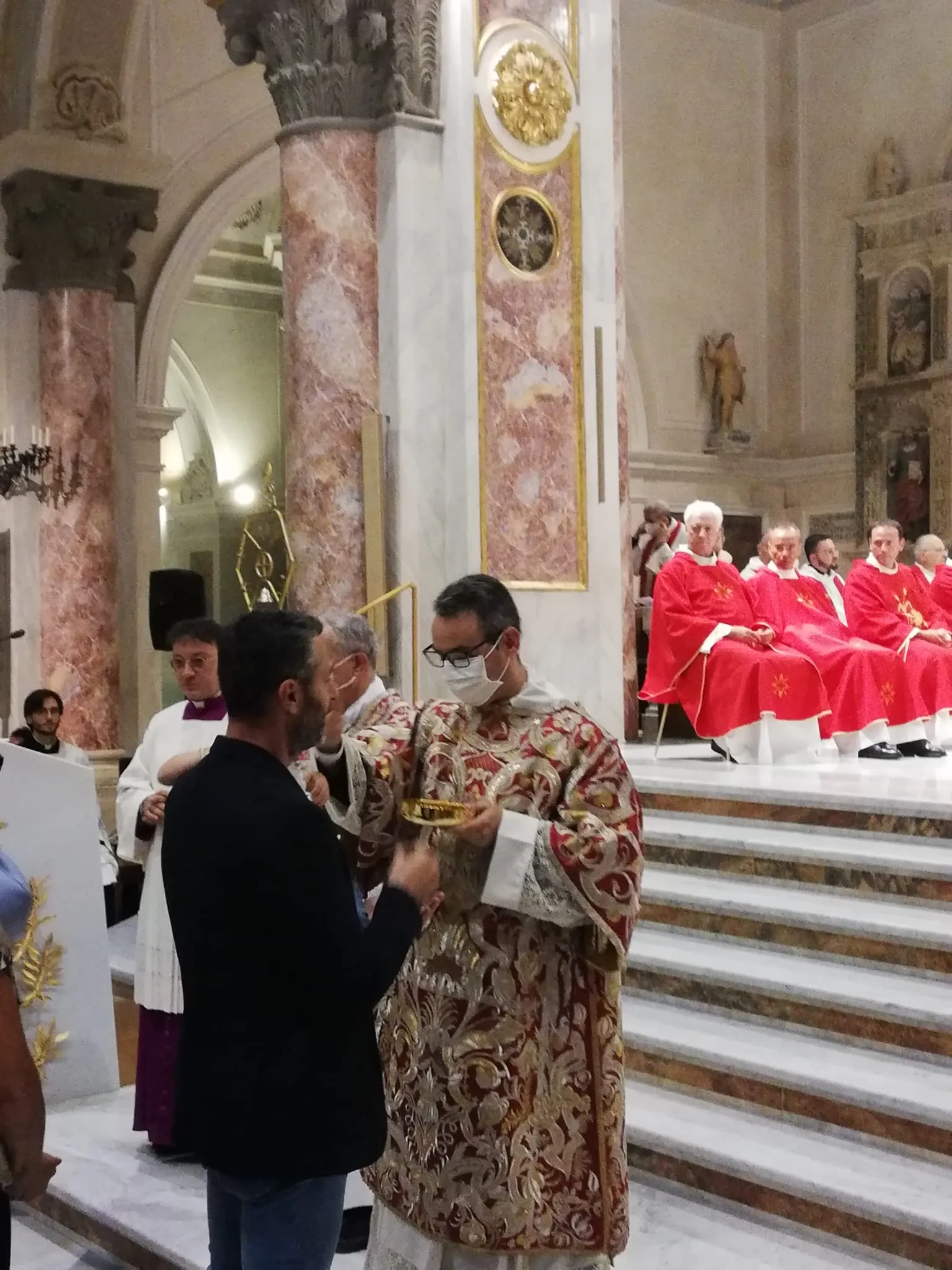 Per la prima volta don Stefano ha potuto innalzare la pisside al momento dell’offertorio, ha incensato l’Arcivescovo e, da ministro ordinario della comunione ha distribuito, accanto all’Arcivescovo ai piedi del presbiterio, l’Eucaristia.