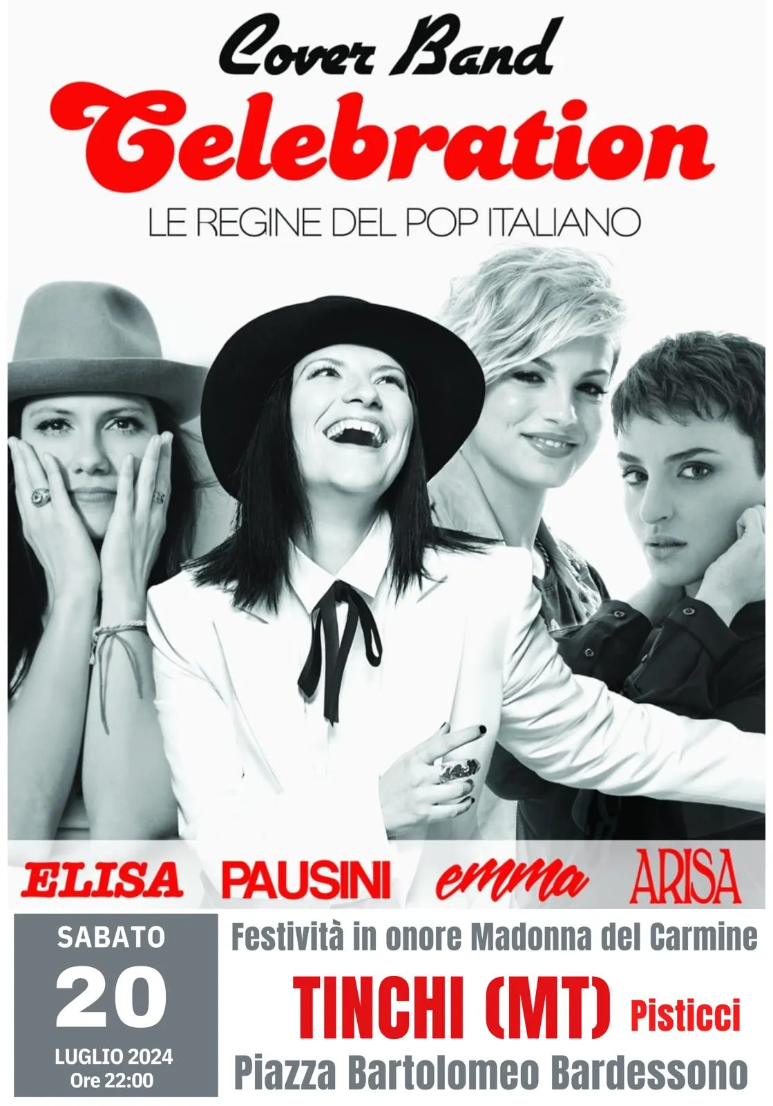 Il programma civile della festa prevede due serate dedicate alle più belle voci femminili della discografia italiana. Sabato 20 luglio alle ore 22:00 la Cover Band “CELEBRATION – Le regine del Pop Italiano”, inonderà piazza Bardessono con le note delle cover di Elisa, Laura Pausini, Emma e Arisa.